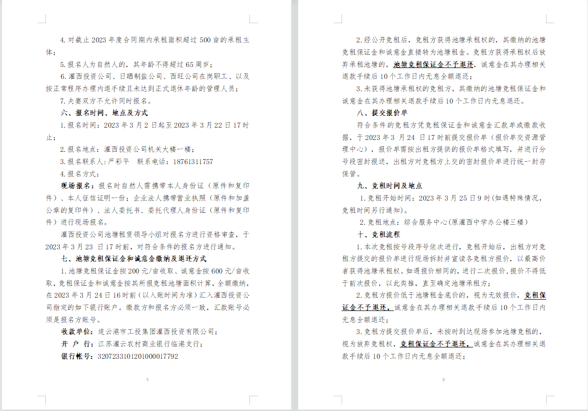 連云港市工投集團灌西投資公司2023年度淡水養(yǎng)殖池塘公開競租公告